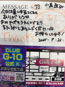 仕事帰りの平日に、またまたCLUB G-10さんにお邪魔してきました。